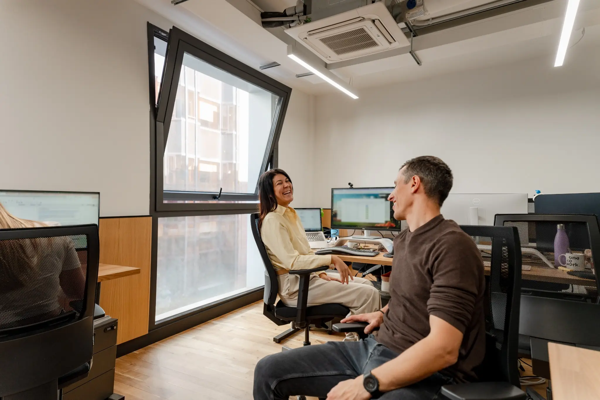 Puedes cambiar de sitio cada día o tener tu escritorio personal, rodeado de profesionales con los que surgen conexiones y oportunidades reales.